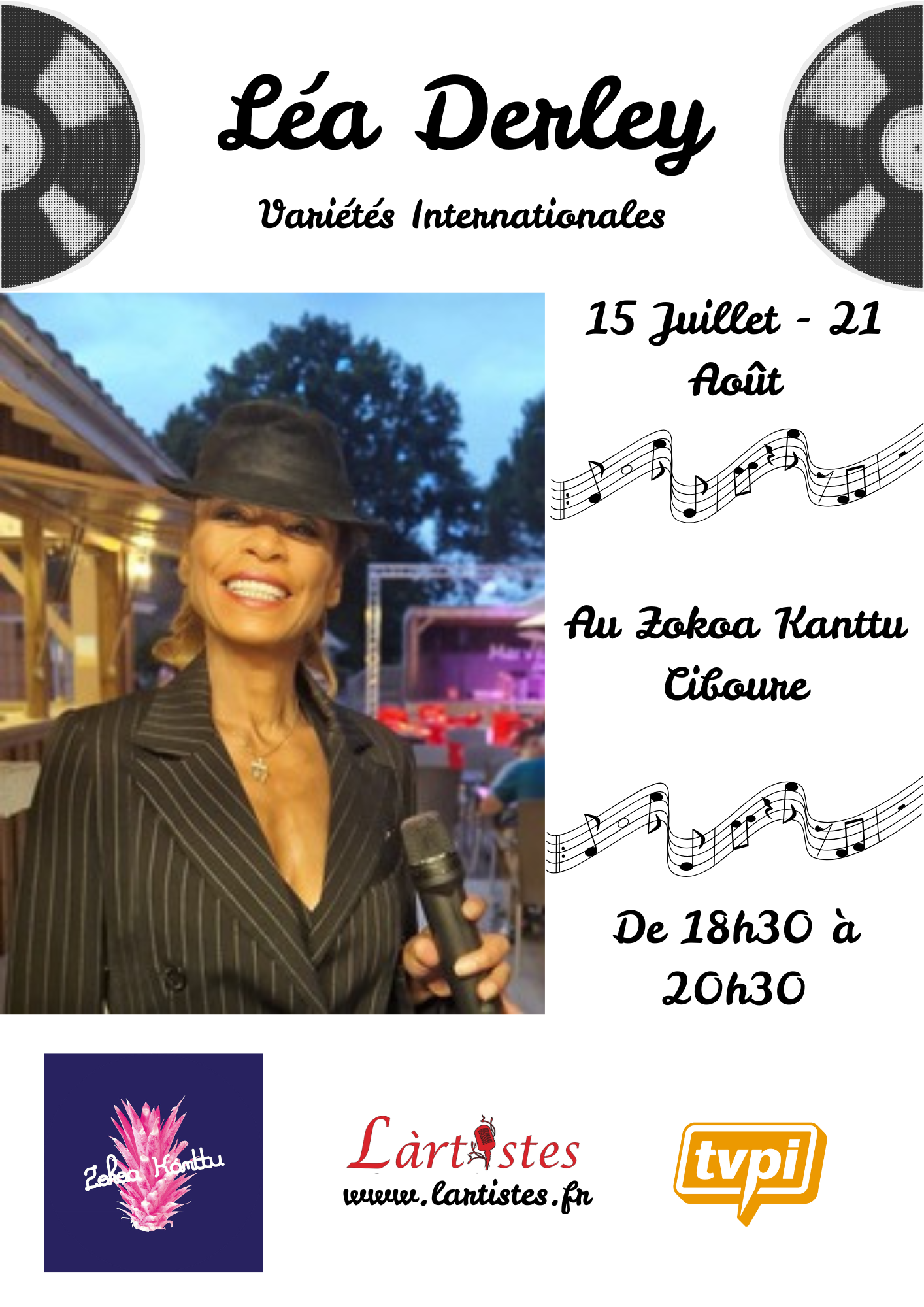 Léa Derley en concert 21 août 2025 18h30 Zokoa Kanttu - Ciboure Venez plonger dans un Univers Cabaret des années 60’/70′ jusqu’à nos jours !
