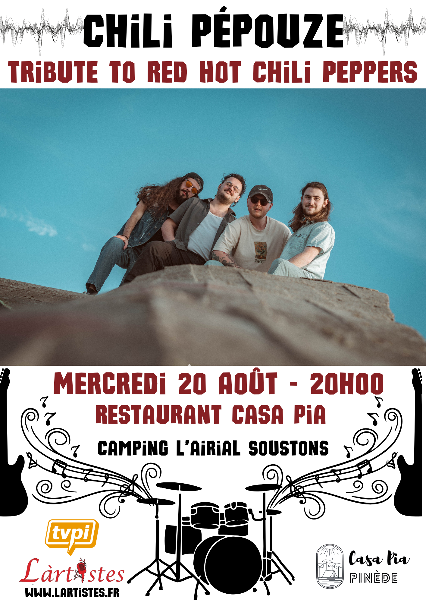 Les Chili Pépouze en concert ! Tribute to Red Hot Chili Peppers 20 août 2025 20h00 Casa Pia - Soustons Nollie Cab en concert chez Boardriders Capbreton le jeudi 16 mars 2023 – Start 20h